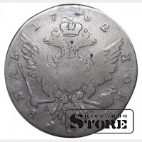 Vene Impeeriumi münt nimiväärtusega 1 rubla, välja antud 1762. aastal keiser Peeter III valitsemise ajal. Rahapaja — MMD (Moskva rahapaja), vermija DM. Materjal — hõbe, kaal 24 g. Kataloogi numbrid: C#47.1, Bitkin 9 (R).