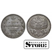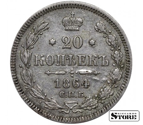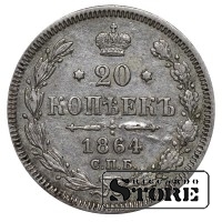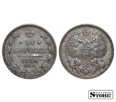Vene Impeeriumi münt nimiväärtusega 20 kopikat, välja antud 1864. aastal keiser Aleksander II (1855–1881) valitsemise ajal. Materjal — hõbe, kaal 4,08 g.
