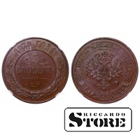 Vene Keisririik, 5 kopikat 1874 ЕМ, Aleksander II, vask, NGC MS 62 BN