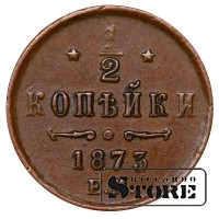 Vene Impeeriumi münt nimiväärtusega ½ kopikat, välja antud 1873. aastal keiser Aleksander II (1855–1881) valitsemise ajal. Materjal — vask, kaal 1,64 g.