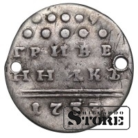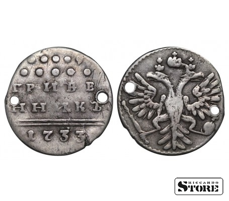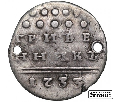 Russian Empire coin with a denomination of 1 Grivennik, issued in 1733 during the reign of Empress Anna I (1730–1740). Composition — silver, weight 2.59 g.