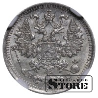 Russian Empire coin with a denomination of 5 Kopecks, issued in 1914 during the reign of Emperor Nicholas II (1894–1917). Composition — silver, weight 0.9 g. Certified by NGC with a grade of UNC DETAILS.