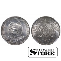 Kingdom of Prussia, 2 Marks, 1901 year, 200th Anniversary of the Kingdom of Prussia, NGC UNC DETAILS, William II