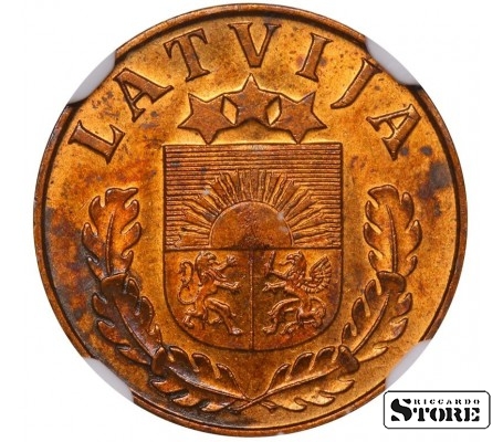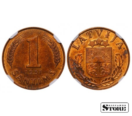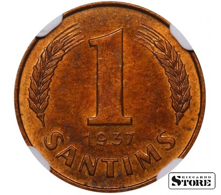 Bronzinė 1 santimo Latvijos Respublikos moneta, išleista 1937 metais Pirmosios Respublikos laikotarpiu (1922–1940). Tai standartinė apyvartinė moneta: averse vaizduojamas mažasis Latvijos herbas virš ąžuolo šakų, reverse – nominalas tarp šakelių virš datos. Monetos svoris 1,8 g, skersmuo 17 mm, katalogo numeris KM#10. Šis egzempliorius sertifikuotas NGC su išsaugojimo laipsniu UNC DETAILS (Uncirculated Details).