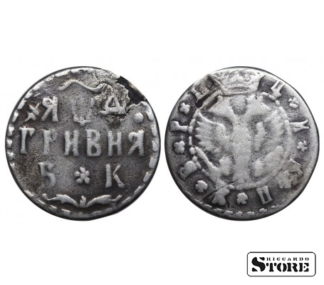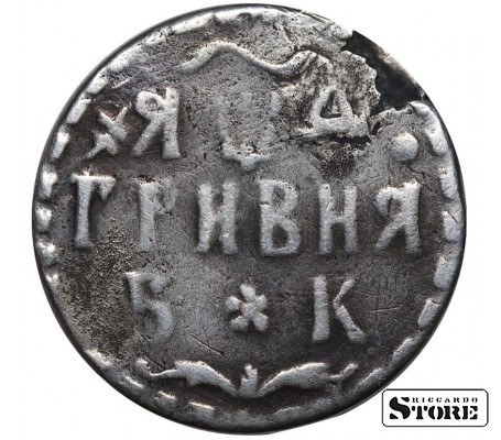 Rusijos Imperijos moneta, kurios nominalas 1 grivina, išleista 1704 m. caro Petro I (1682–1721) valdymo laikais. Medžiaga — sidabras, svoris 2,8 g.