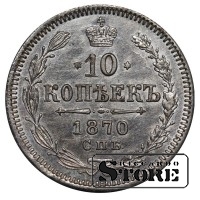 Rusijos Imperija, 10 kapeikų, 1870 m., Aleksandras II