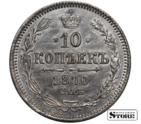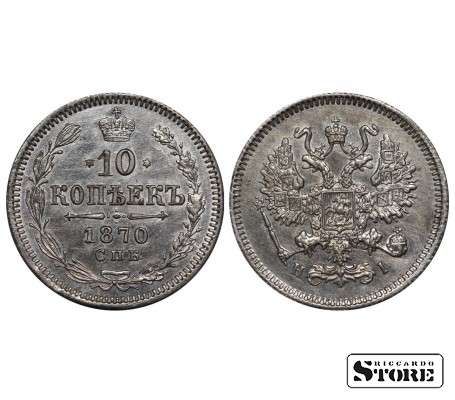 Rusijos Imperijos moneta, kurios nominalas 10 kapeikų, išleista 1870 m. imperatoriaus Aleksandro II (1855–1881) valdymo laikais. Medžiaga — sidabras, svoris 1,8 g.