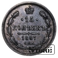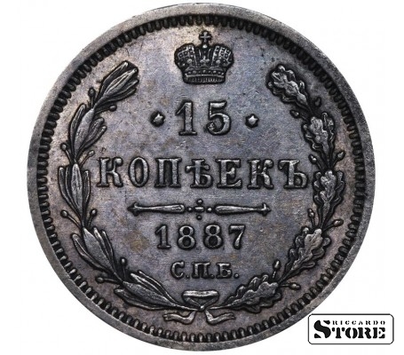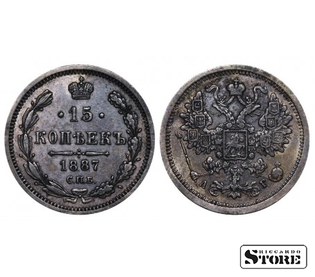 Rusijos Imperijos moneta, kurios nominalas 15 kapeikų, išleista 1887 m. imperatoriaus Aleksandro III (1881–1894) valdymo laikais. Medžiaga — sidabras, svoris 2,7 g.