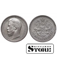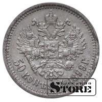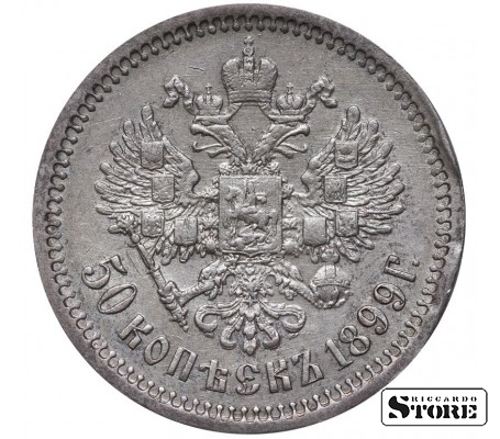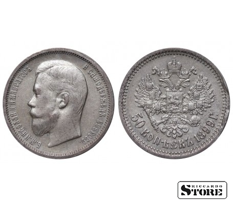 Rusijos Imperijos moneta, kurios nominalas 50 kapeikų, išleista 1899 m. imperatoriaus Nikolajaus II (1894–1917) valdymo laikais. Medžiaga — sidabras, svoris 10 g. Katalogo numeriai: Y#58.2, Bitkin 76.