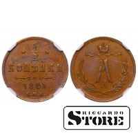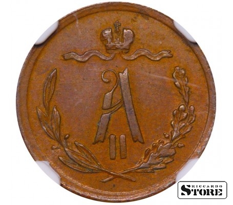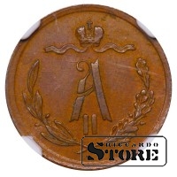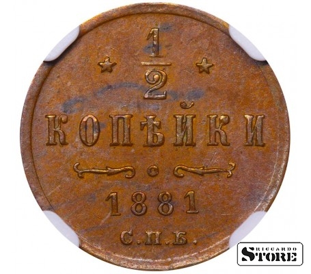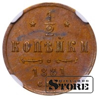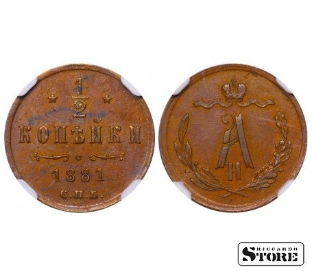 Rusijos Imperijos moneta, kurios nominalas ½ kapeikos, išleista 1881 m. Sankt Peterburgo monetų kalykloje imperatoriaus Aleksandro II (1855–1881) valdymo laikais. Medžiaga — varis, svoris 1,64 g. Įvertinta NGC — AU 58 BN.