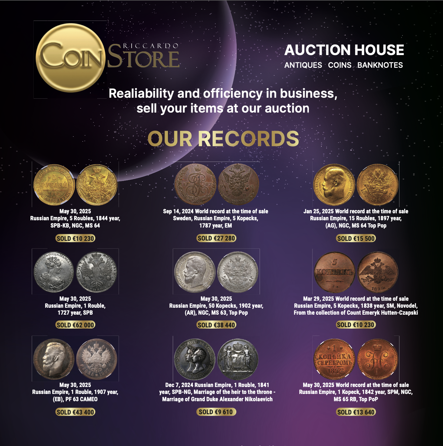 COINSTORE — 12 starptautiskas izsoles, 15 pasaules pārdošanas rekordi.