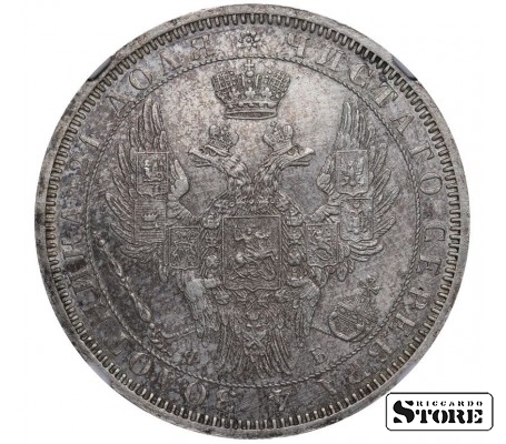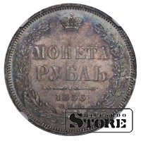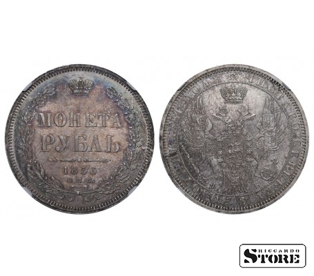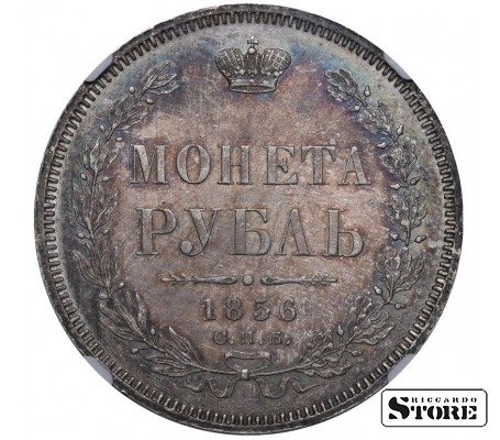 Krievijas Impērijas monēta ar nominālu 1 rublis, izdota 1856. gadā Aleksandra II (1855–1881) valdīšanas laikā. Monētu kaltuve — SPB (Sanktpēterburgas kaltuve), meistars FB. Materiāls — sudrabs, svars 20,73 g. Stāvoklis NGC UNC DETAILS. Kataloga numuri: C#168.1, Bitkin 46.