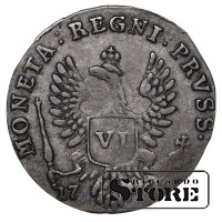 Krievijas okupācijas laikā Austrumprūsijā izdota monēta ar nominālu 6 groši, kalta 1760.–1762. gadā imperatores Elizabetes (1741–1762) valdīšanas laikā. Materiāls — sudrabs, svars 2,83 g. Vēsturisks izdevums, kas saistīts ar Septiņu gadu karu.