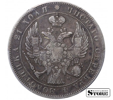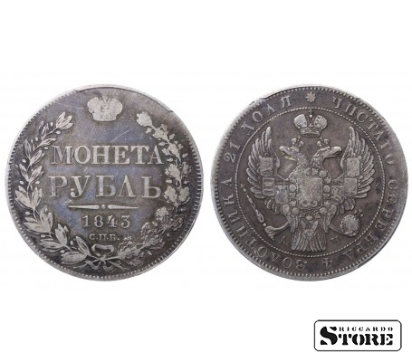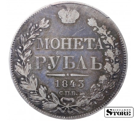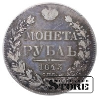 Krievijas Impērijas monēta ar nominālu 1 rublis, izdota 1843. gadā Sanktpēterburgas kaltuvē imperatora Nikolaja I (1825–1855) valdīšanas laikā. Materiāls — sudrabs, svars 20,73 g. Sertifikāts PCGS ar novērtējumu VF Detail.