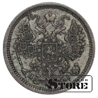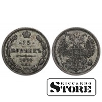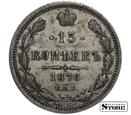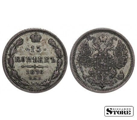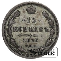 Krievijas Impērijas monēta ar nominālu 15 kapeiku, izdota 1876. gadā imperatora Aleksandra II (1855–1881) valdīšanas laikā. Materiāls — sudrabs, svars 2,7 g.