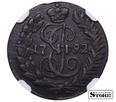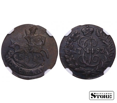 Krievijas Impērijas monēta ar nominālu 1 polaška, izdota 1792. gadā Kolučuginas kaltuvē imperatores Katrīnas II (1762–1796) valdīšanas laikā. Materiāls — varš, svars 2,56 g. Sertifikāts NGC ar novērtējumu AU 53 BN. Rets kolekcionējams eksemplārs ar skaistu patinu.