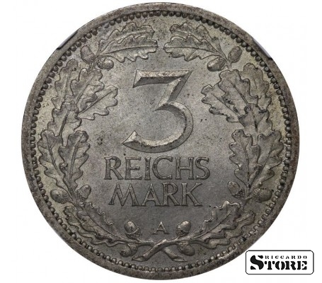 Vācija, 3 reihsmarkas, 1931. gads, A (Berlīne), sudrabs, NGC MS 62