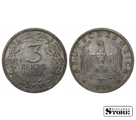 Vācijas Weimāras Republikas monēta ar nominālu 3 reihsmarkas, izdota 1931. gadā Berlīnes (A) kaltuvē. Stāvoklis MS 62, materiāls — sudrabs 0,625. Svars 5,5 g, diametrs 29 mm, mala rievota. Piemiņas nomināls ar vēsturisku nozīmi.