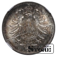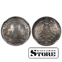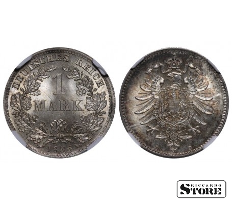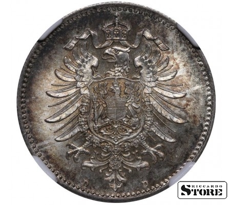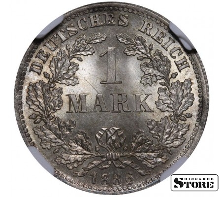 Vācija, 1 marka, 1886. gads, D, sudrabs, NGC MS 67, Top Pop
