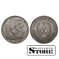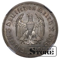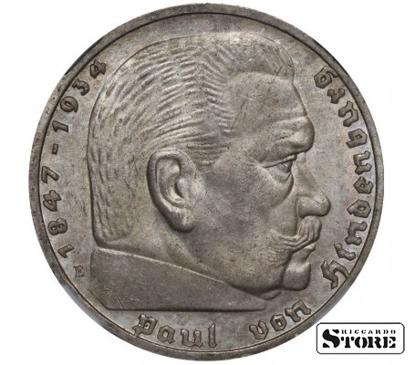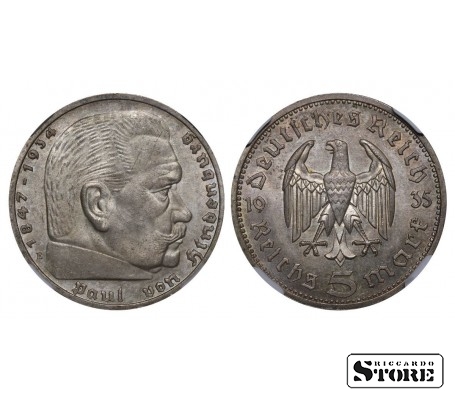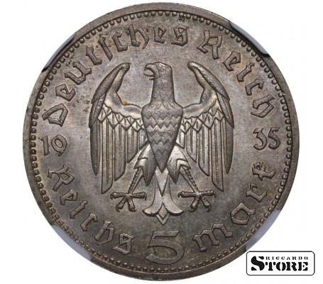 Vācija, 5 reišmarkas, 1935. gads, E, sudrabs, NGC MS 64