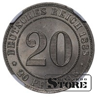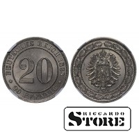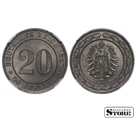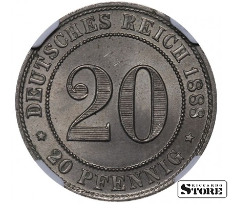 Vācija, 20 pfennigu, 1888. gads, G, vara-niķelis, NGC MS 64