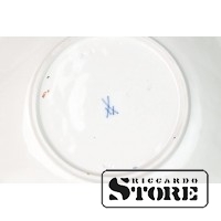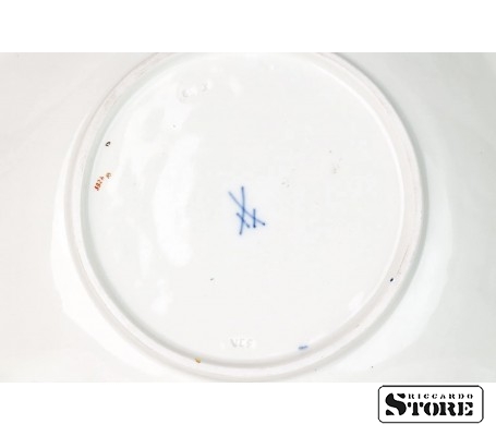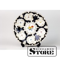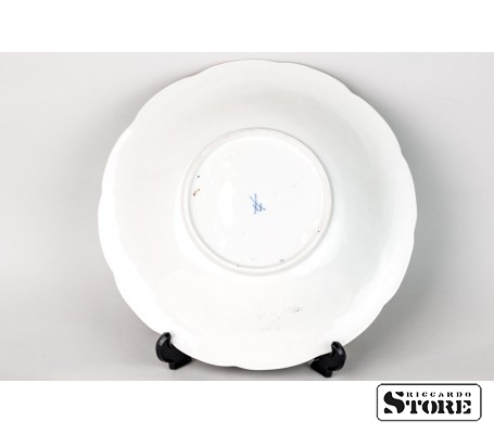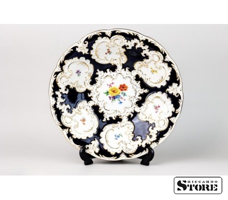 Декоративная тарелка, фарфор, Мейсенская мануфактура, Мейсен / Meissen, Германия, тёмно-синий цвет с золотым эффектом, ручная роспись, золочение, диаметр 28,5 см, знак — синие скрещённые мечи.