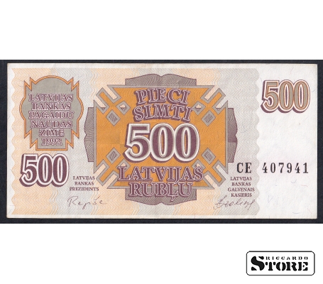 Банкнота 500 латвийских рублей 1992 года CE 407941 — временная валюта Латвии