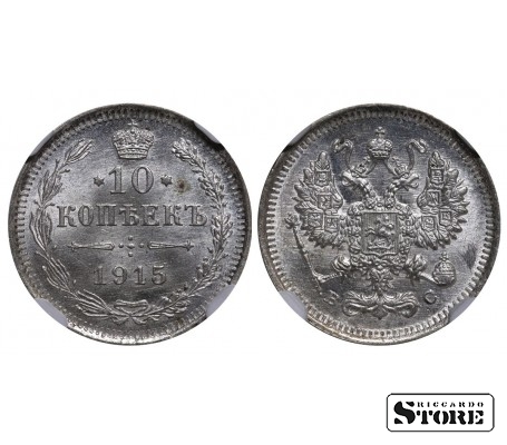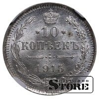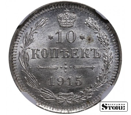 Российская Империя, 10 копеек, 1915 год, VS, NGC MS 66, Николай II
