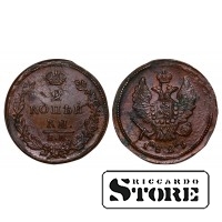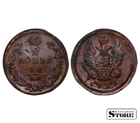Монета Российской Империи номиналом 2 копейки, выпущенная в 1825 году в период правления императора Александра I (1801–1825). Материал — медь, вес 13,65 г.