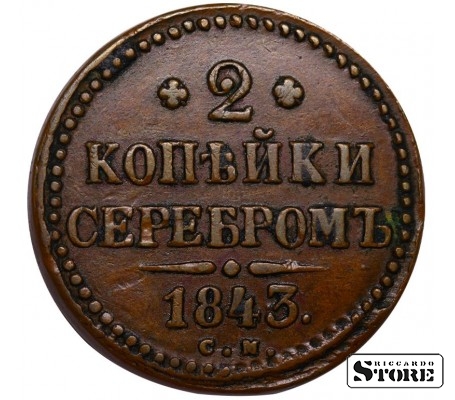 Российская Империя, 2 копейки, 1843 год, Николай I